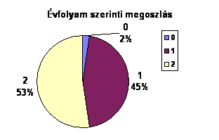 A hallgatók nagyjából fele-fele arányban képviselik a saját évfolyamukat. Mindössze 2 % nem jelölte meg az évfolyamát.