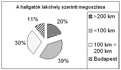 Mint látható a hallgatói létszám egyötöde 200 km-nél távolabbról utazik. Az első óra kezdési illetve az utolsó befejezési ideje ezeknek a hallgatóknak rendkívül fontos, nem mindenki tudja megoldani a pesti szállást.