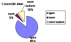 A megkérdezettek 85%-a szeretne licenciát szerezni, (döntő többség), 10%-a bizonytalan, 5% nemmel válaszolt. Határozott érdeklődés mutatkozik és a licenciátus rangja erőteljes motiváló tényező.