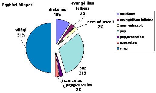 A világiak közül 38% házas. Elgondolkoztató, hogy a házasok nem érdeklődnek különösen a képzés iránt.