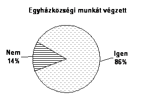 A megkérdezettek 86%-a válaszolt igennel. Csupán 14%-uk nem vesz részt aktívan egyházközségi életben. Ez lehet érdektelenség, időkorlát, de nem zárható ki a lehetőség hiánya sem.