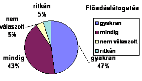 E kérdés nagy hiányossága, hogy nem határoztam meg mit jelent a mindig, gyakran és ritkán, vagyis milyen mértékű lehet a hiányzás, így ez a hallgatók saját megítélésére volt bízva. Természetesen, mivel a ritkán vagy soha meg nem jelenő hallgatók nem töltöttek ki kérdőívet, a válasz egyoldalú és nem jellemző a hallgatók összességére.