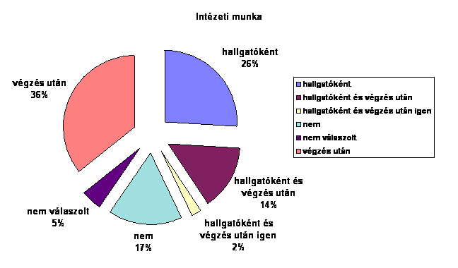 Ha folytatni tudnám a megkezdett felmérést, az eredeti célt elérve valóban tudatosan megtervezhető lenne, hatékonyabbá válhatna az Intézetben a folyó oktatás. Csökkenthetővé válna az elvárások-teljesítések közti távolság. A teljes feldolgozás segítséget nyújthatna a követelményszint felállítása, a kommunikáció javítása, a pontos tájékoztatás, az időben eljutatott információ, a kommunikációs eszközök célzott használata szempontjából.